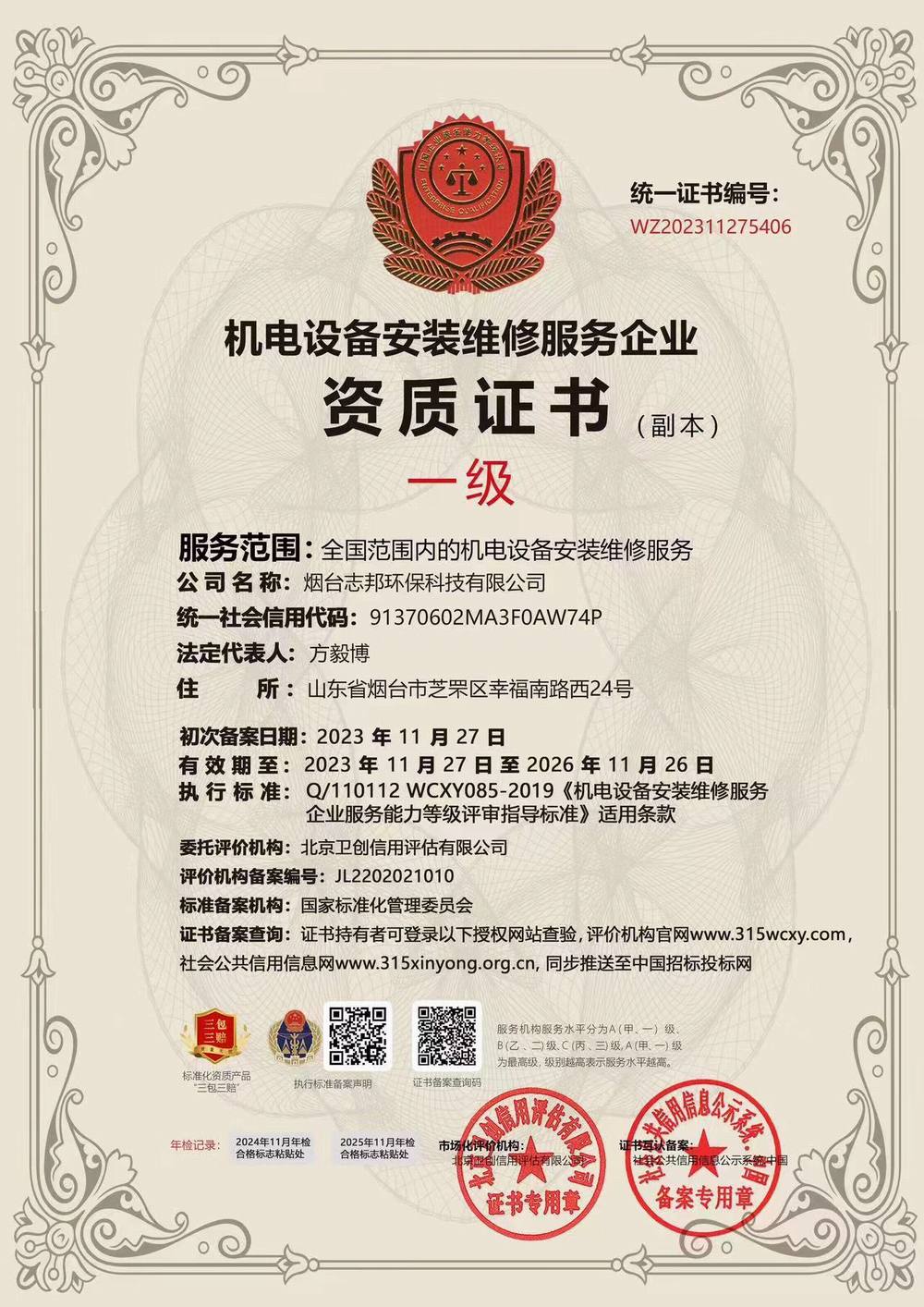 機(jī)電設(shè)備安裝維修服務(wù)企業(yè)資質(zhì)證書